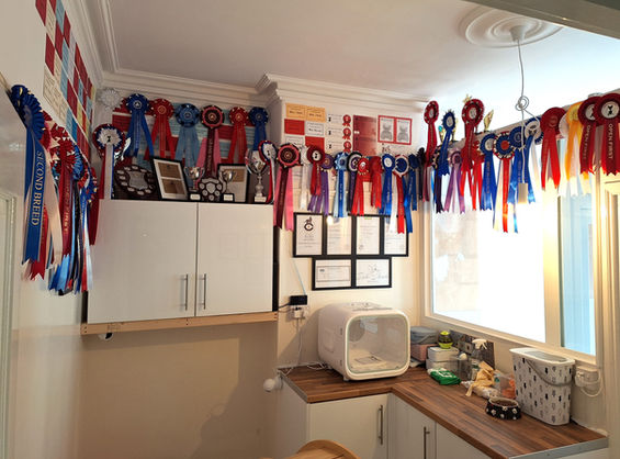 In 2024, Gus Gus completed an incredible 100-mile exercise wheel challenge, tracked by a digital bicycle speedometer, to raise £100 for Cats Protection. He finished the challenge in just ten days and was awarded a special Cats Protection rosette, in recognition of his efforts. He Achieved GCCF Champion status in just four shows as Gus Gus truly exemplifies everything we love about the traditional Ragdoll, beauty, balance, and a heart of pure gold.